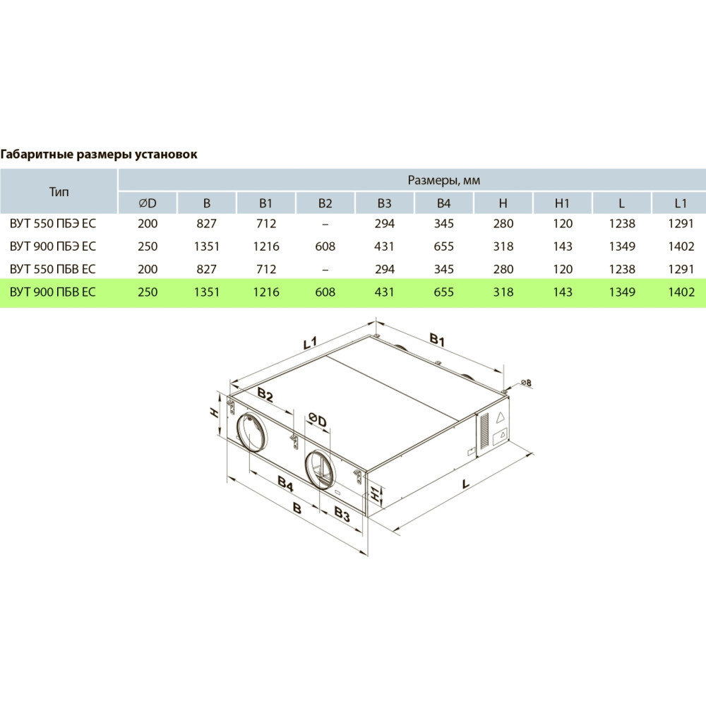 Приточно-вытяжная установка Вентс ВУТ 900 ПБЭ ЕС П А21 DTV